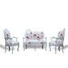Exclusivo sillón tamaño miniatura modelo Dubarry fabricado en madera de cedro, barnizado en el concepto vintage y tapizado en rayas doradas.